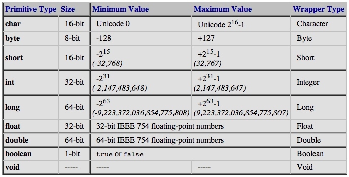 There are eight so-called primitive types built into Java. The primitive types are named byte, short, int, long, float, double, char, and boolean.