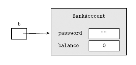 BanNAccoXnt b;defines a reference b that is uninitialized. An uninitialized object variable is called a null reference or null pointer. You can test whether a variable refers to an object or is uninitialized by using the keyword null