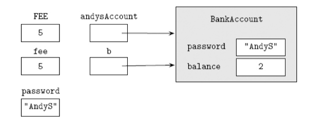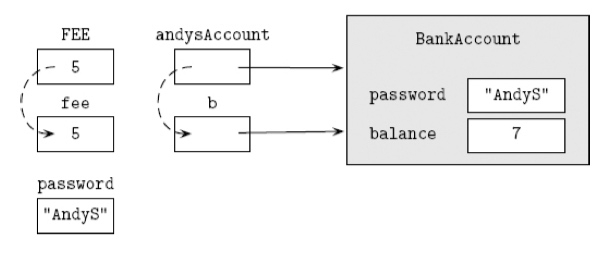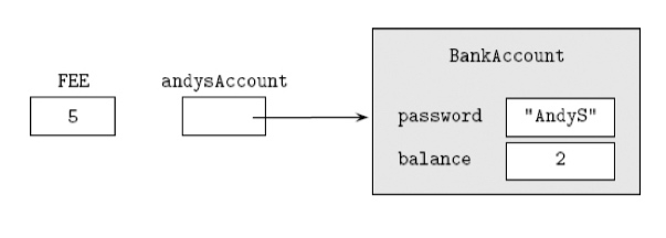 The andysAccount reference is unchanged throughout the program segment. The object to which it refers, however, has been changed. This is significant.