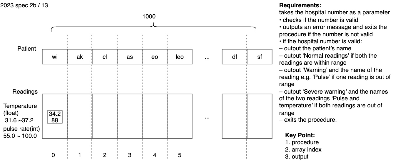 The hospital number given to the patient is used for the index on both arrays, this is a value between 1 and 1000 inclusive.