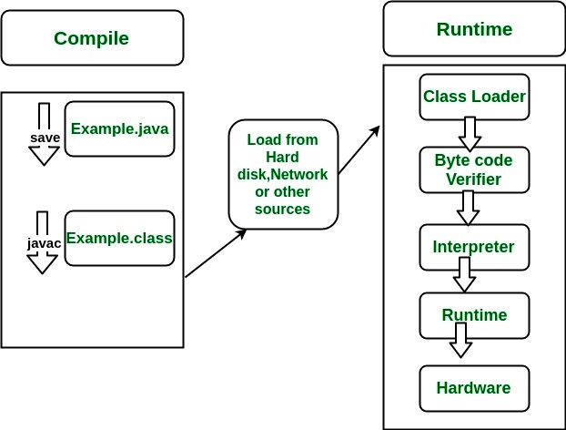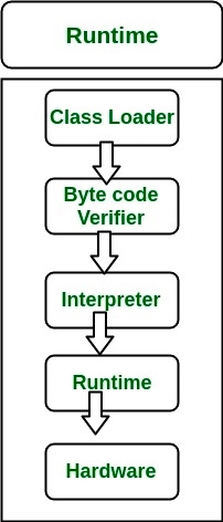 • Intrepreter: At runtime the Byte Code is loaded, checked and run by the interpreter. The interpreter has the following two functions: