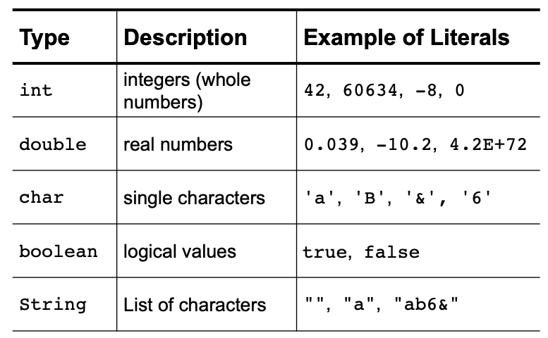 There are eight so-called primitive types built into Java. The primitive types are named byte, short, int, long, float, double, char, and boolean.