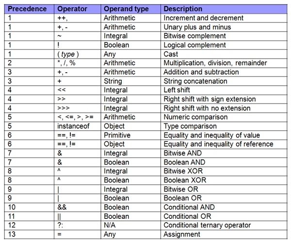 These operations can be used on values of any numeric type: byte, short, int, long, float, or double.