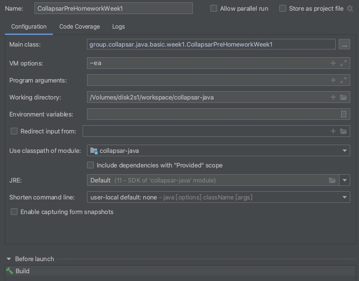 打开CollapsarHomeworkWeek1.java 文件, 运行一下。