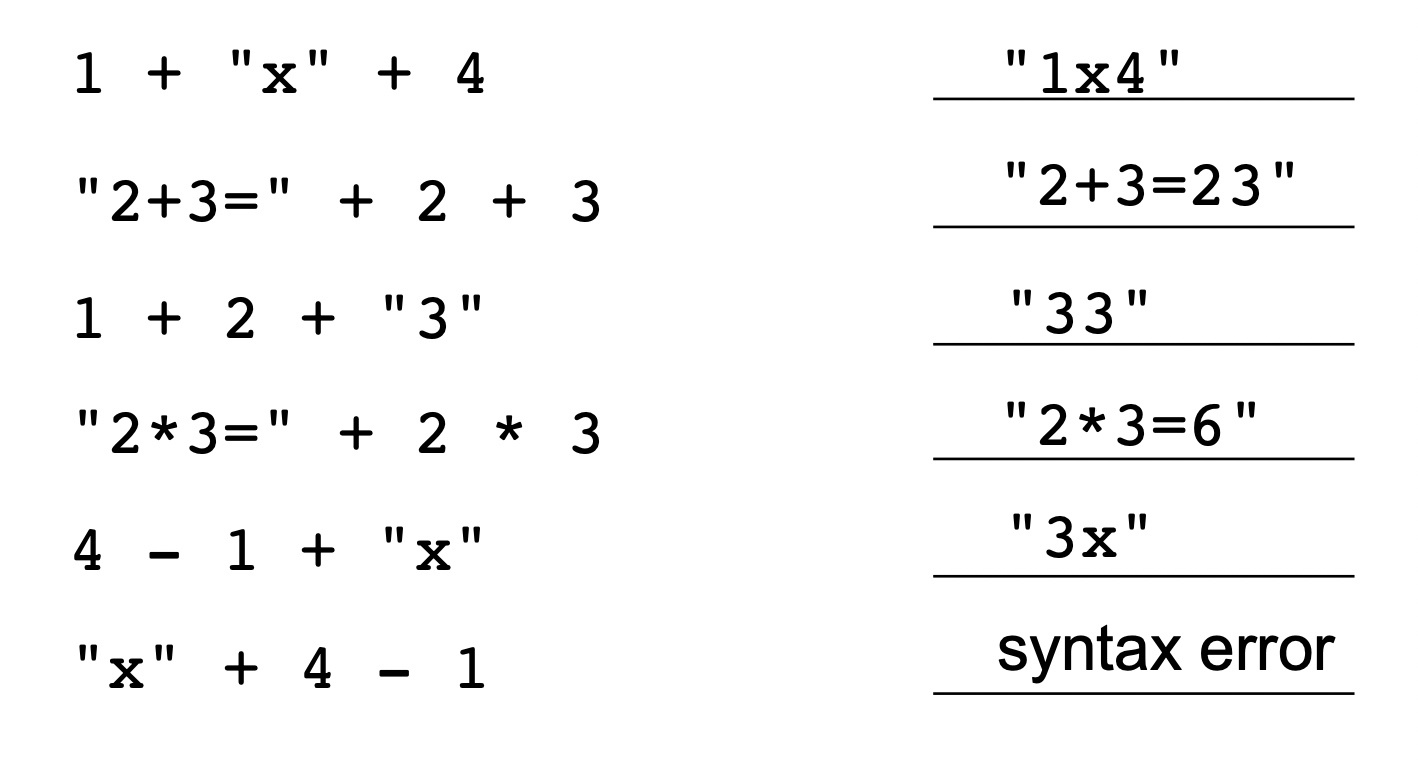 }String concatenation has the same precedence as + and -, and is evaluated left to right.