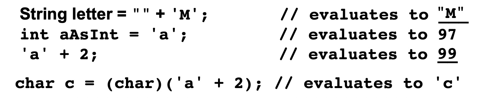 Every character has a corresponding integer value