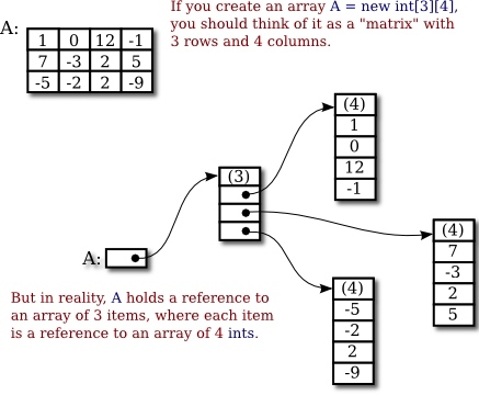 Java does not actually have two-dimensional arrays. In a true 2D array, all the elements of the array occupy a continuous block of memory, but that's not true in Java.