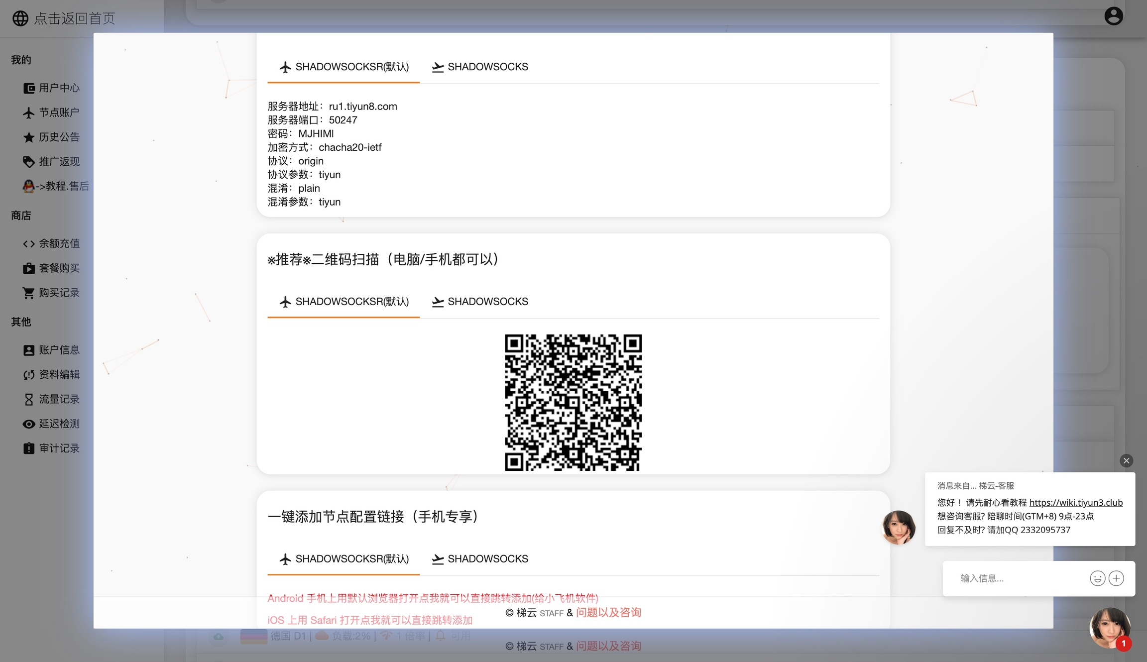 同时你也可以自己添加节点。选择具体的节点,找到电脑二维码,建议是shadowssockssr