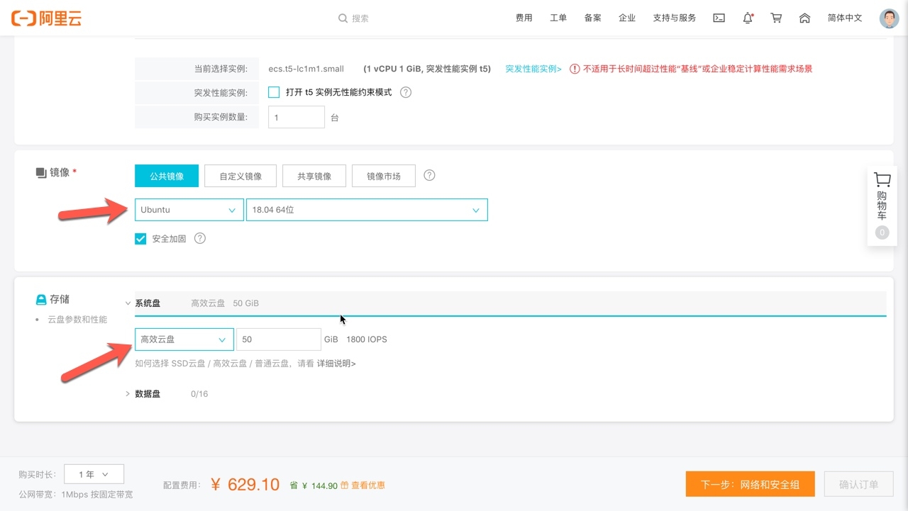 注册登陆后,进入控制台,在ecs中购买
