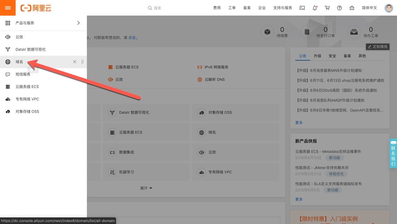在国内的所有网站都需要做域名备案,在阿里鱼的备案中心可以直接做备案。