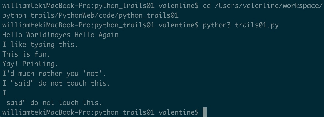 williamtekiMacBook-Pro:python_trails01 valentine$ cd /Users/valentine/workspace/python_trails/PythonWeb/code/python_trails01