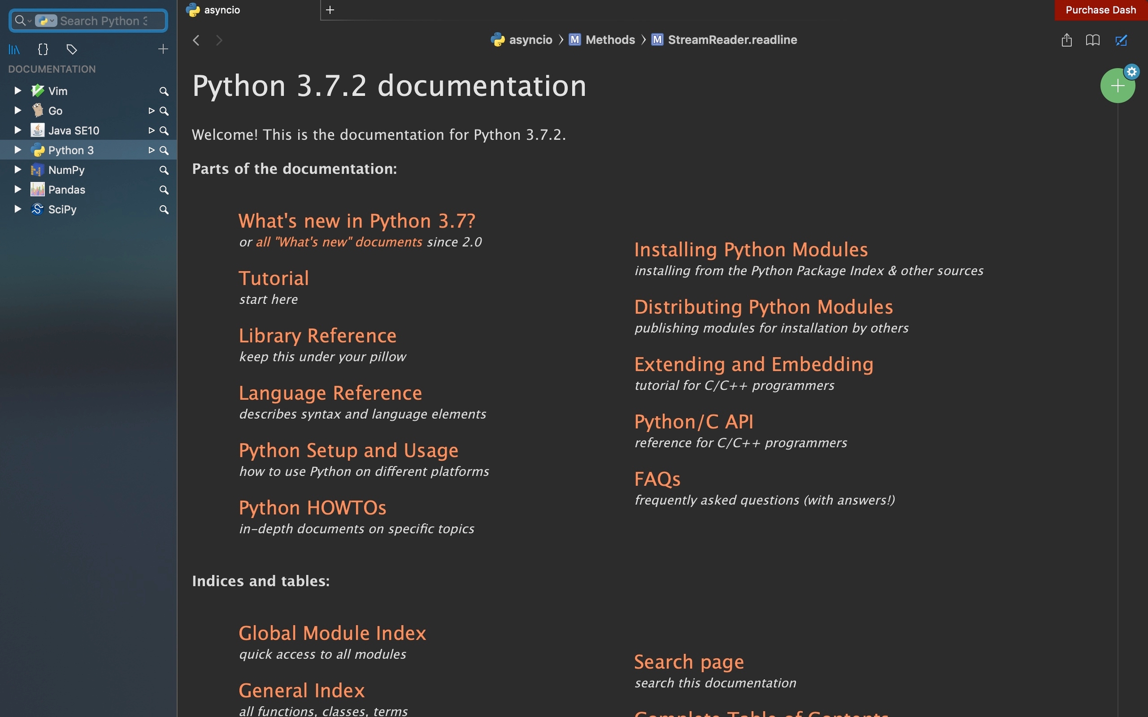 Dash 是适用于Mac OS平台的软件编程文档管理工具,可以浏览API文档,以及管理代码片段工具。Dash自带了丰富的API文档,涉及各种主流的编程语言和框架。