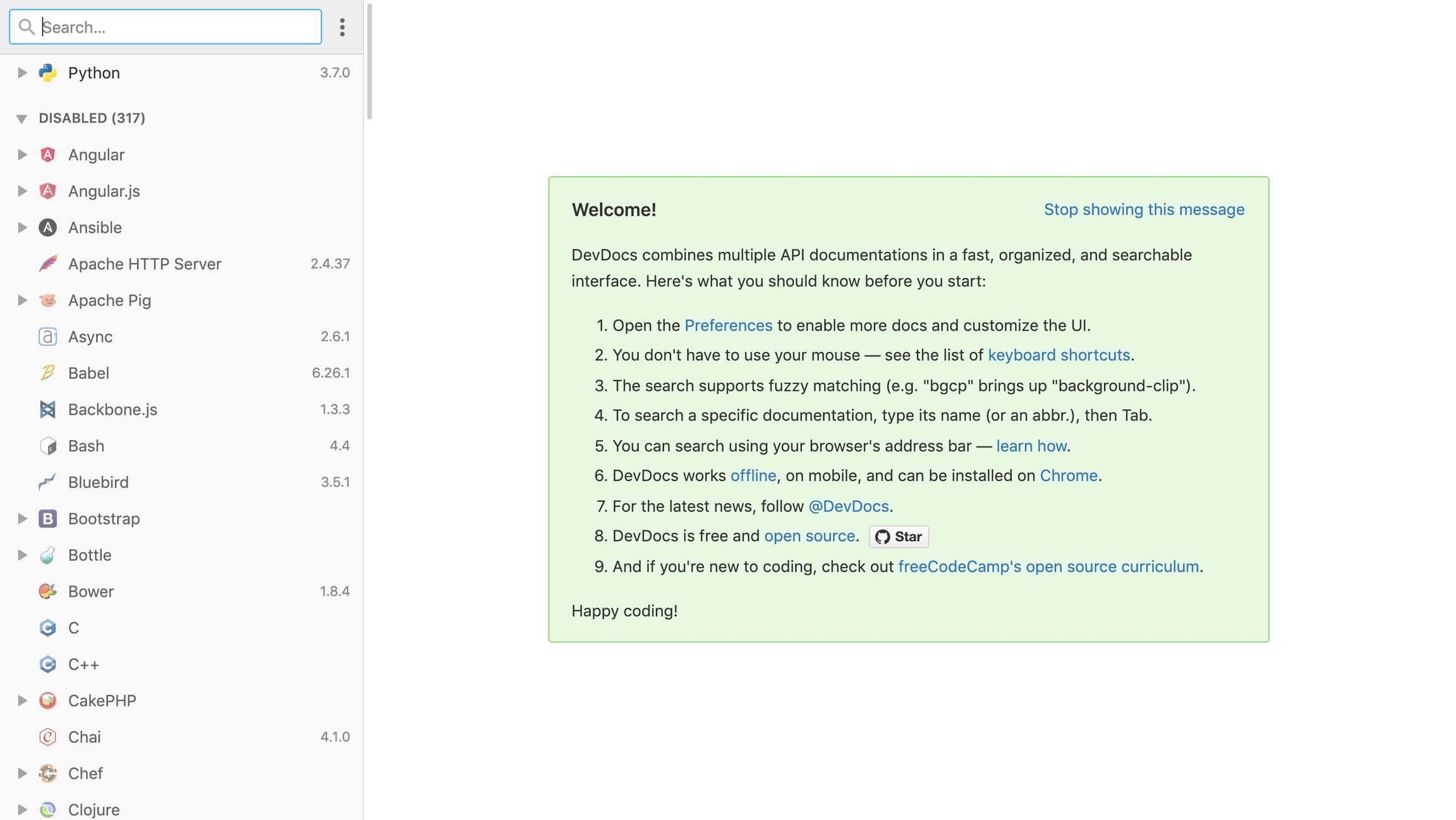 网页版的API文档工具,也同样集成了非常多的语言和框架接口文档。使用起来非常方便。Mac和Windows用户都可以使用。