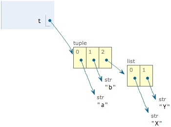 t = ('a', 'b', ['A', 'B']) t[2][0] = 'X' t[2][1] = 'Y' t ('a', 'b', ['X', 'Y']) ```