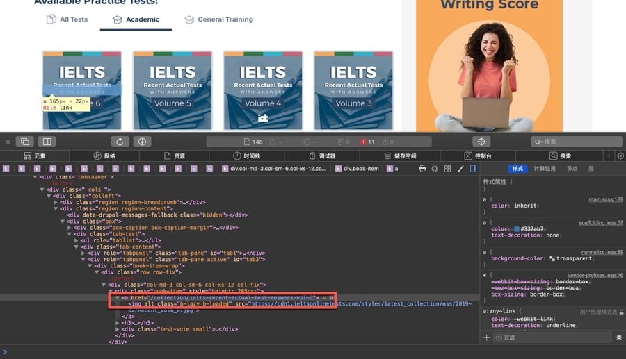 绑定启动url,start_url : https://ieltsonlinetests.com/ielts-exam-library#academic
