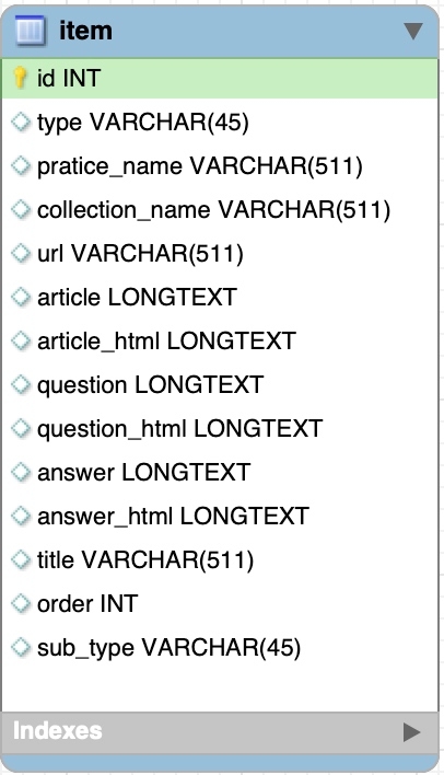 item:一篇Reading文章对应一个item, 一篇Listening文章对应一个item (mp3可能是包含三个的),一个Writing对应一个(分小作为和大作文),一个part一个item。