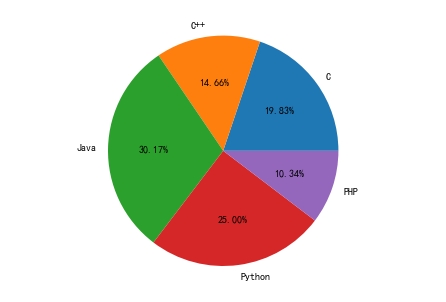 Matplotlib API有一个pie()函数,它生成一个表示数组中数据的饼图。每个楔形的分数面积由x/sum(x)给出。如果sum(x<1,那么x的值直接给出小数区域,并且数组将不被标准化。结果饼图将有一个大小为1的空楔 - sum(x)。