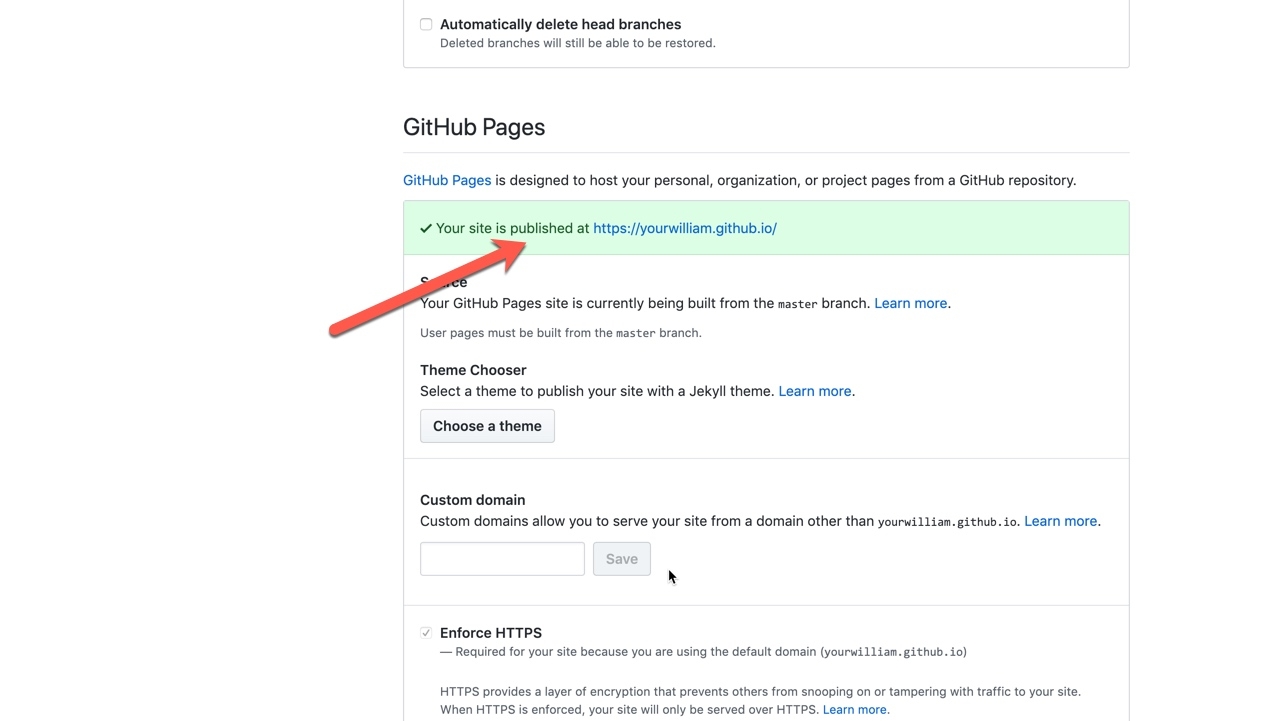 在settings的中可以查看Github Pages是否是published,如果是的表示所有配置完毕