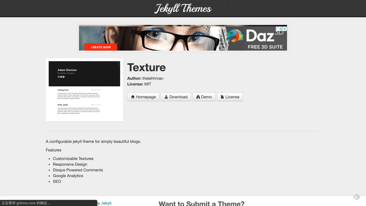 很多网站提供了丰富的jekyll模板,其中包含jekyllthemes.org也可以快速的去找到很多的jekyll主题。